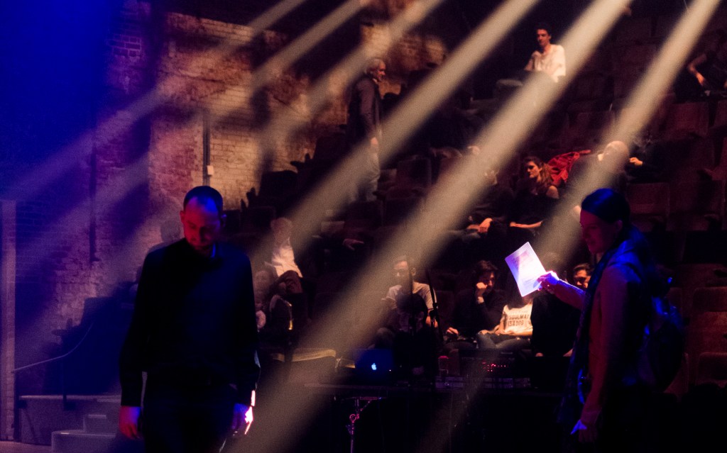 Participatory performance installation for harp, double bass, percussion, electronics, sensors and lights.