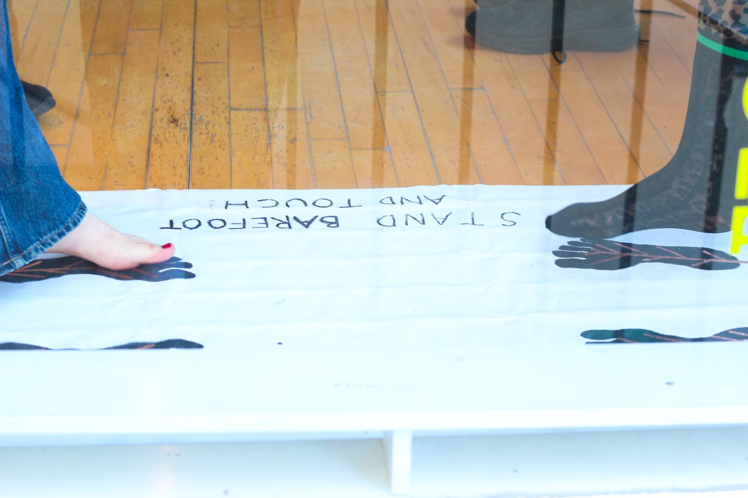 Tocar (2019) is an interactive participatory installation where two people get to know each other through touch. It is an invitation for two participants to explore their partner like an instrument; where contact generates sound. The title Tocar is from Spanish and means to touch, play a musical instrument, or be affected.